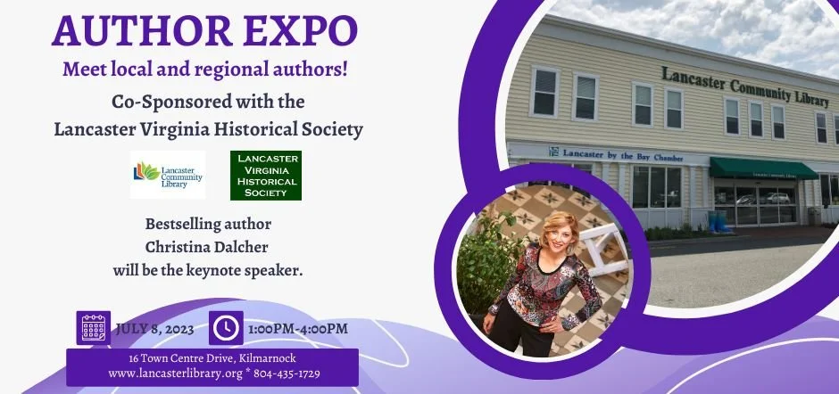 Join me and and other VA authors at the Lancaster Community Library in Kilmarnock, VA this Saturday for their Author Expo!